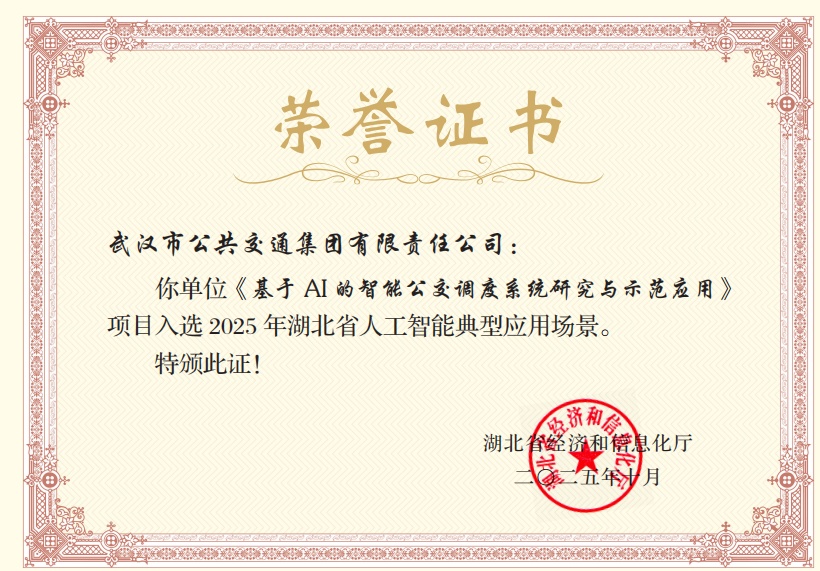 湖北日報訊(記者黃潔如、通訊員方中智)近日,湖北省經濟和信息化廳公布2025年人工智能典型應用場景認定名單,武漢公交集團“基于AI的智能公交調度系統研究與示范應用”項目成功入選。