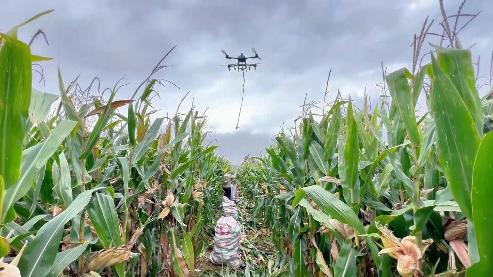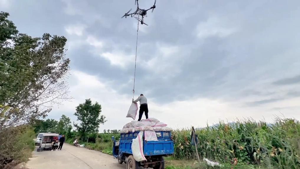 在山西省運城市平陸縣,當地農業部門針對因田間積水無法機收的地塊,組織人工進行搶收;在傳統農機無法下地的情況下,無人機成為搶收“奇兵”。