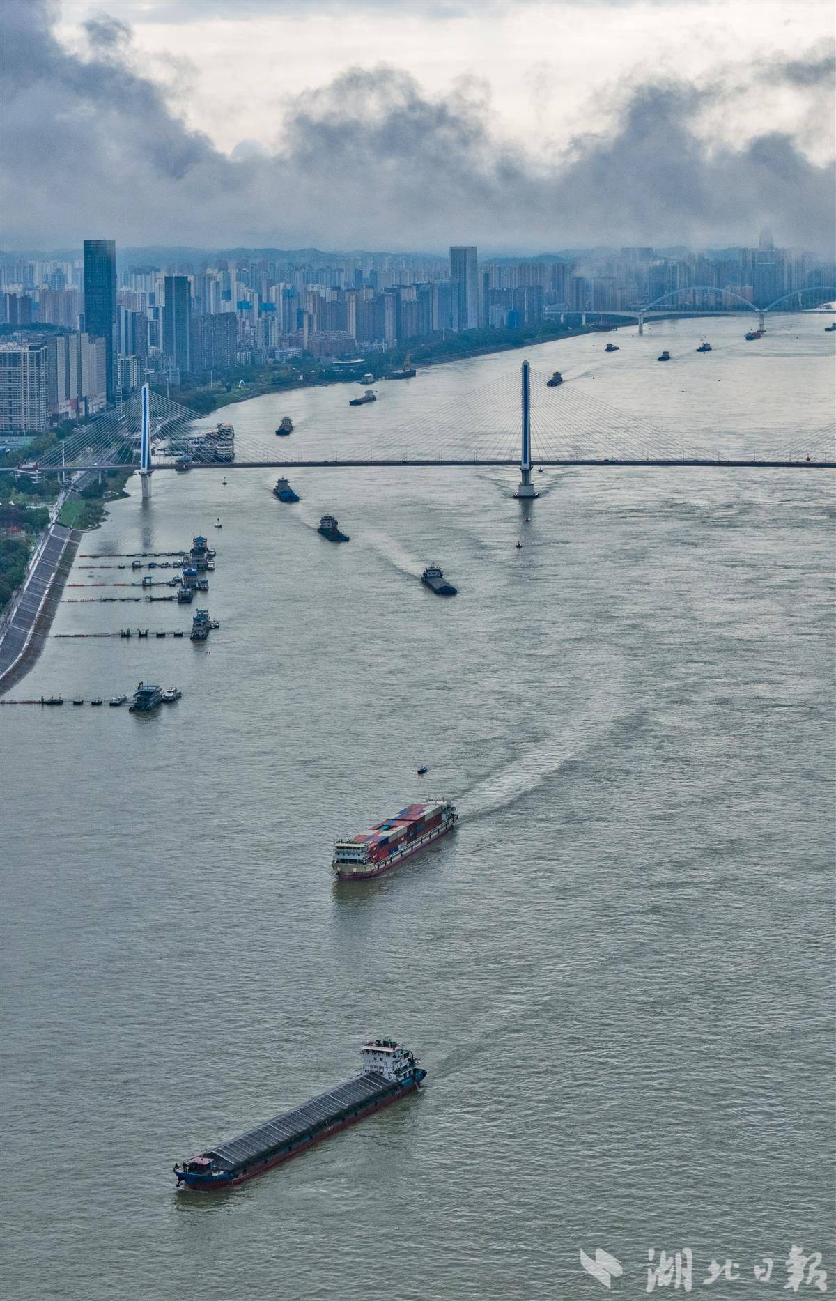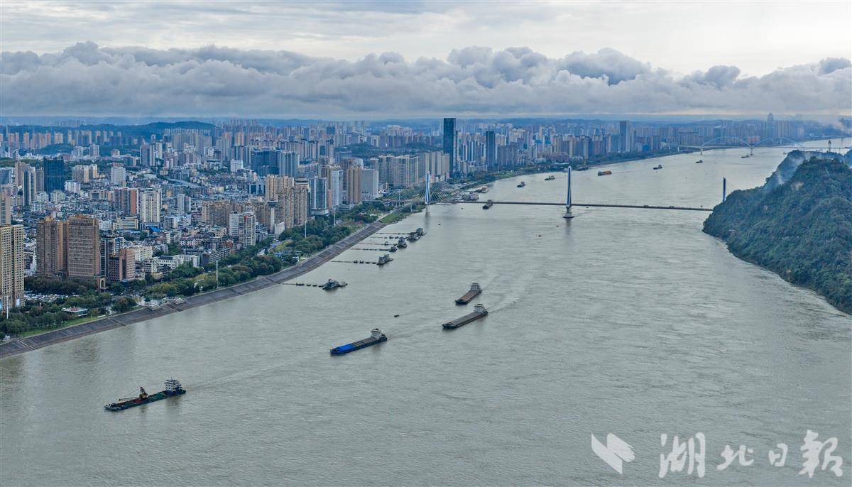 10月14日,長江宜昌段江面呈現(xiàn)一派繁忙景象。近期長江秋汛,流域水位明顯上漲,航道條件得到顯著改善。寬闊順直的江面上,滿載貨物的船舶往來如織,有序航行,黃金水道活力十足。(湖北日報全媒記者 劉曙松 攝)