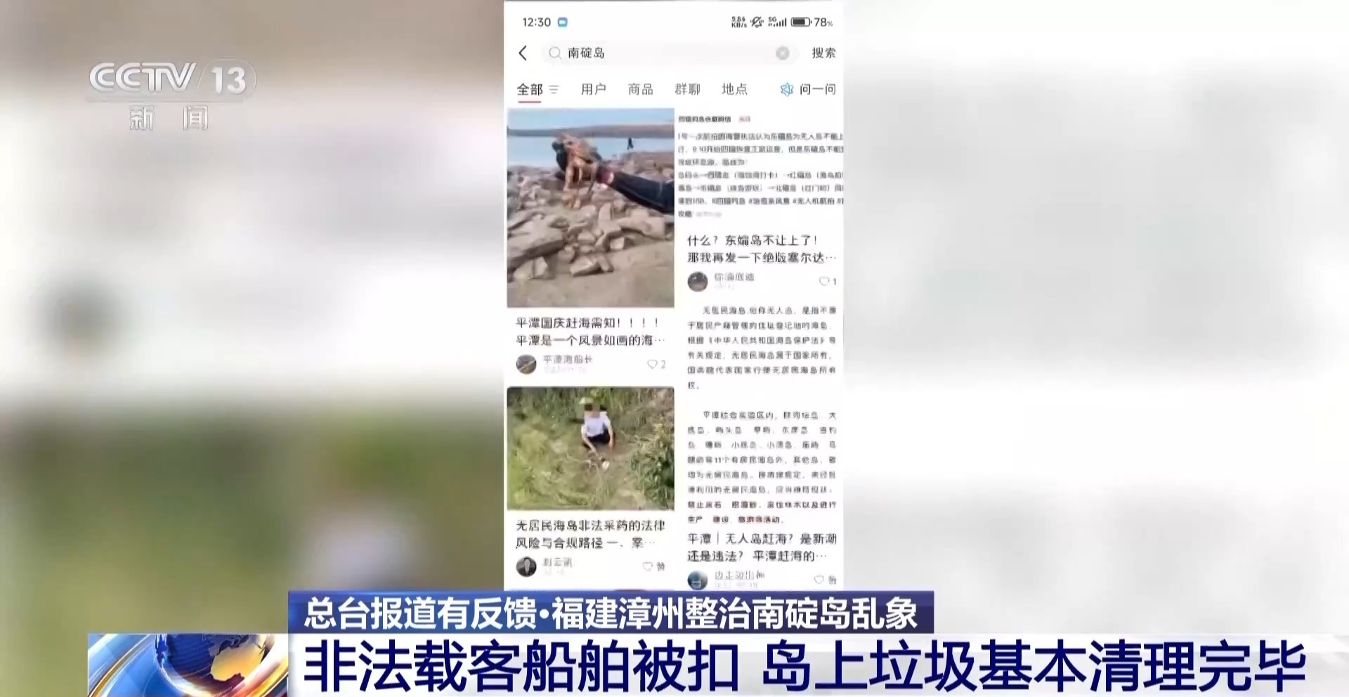 針對報道反映的問題,當地自然資源、海洋漁業、公安等部門立即開展海上巡查,依法暫扣7艘涉嫌非法載客船舶并立案調查,相關非法營運裝置已被拆除。屬地鄉鎮已于報道當天組織人員登島清理垃圾,目前島上垃圾已基本清理完畢,下一步將加強海漂垃圾的常態化治理。