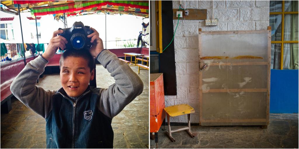拼版照片:2013年10月9日,達瓦次仁在用相機拍照(左圖);達瓦次仁拍攝的照片(右圖)。