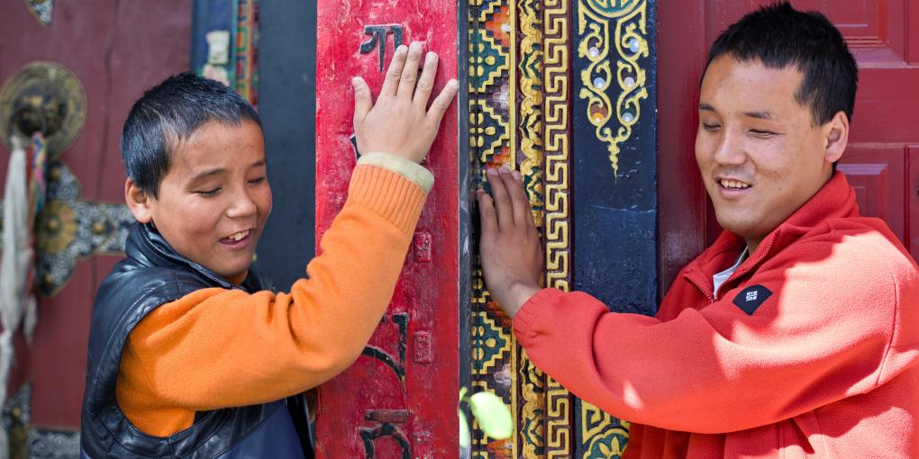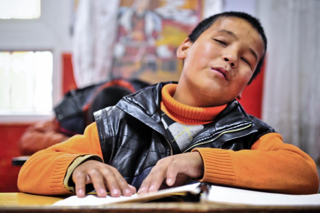 初識達瓦次仁,他是盲童學校里的“孩子王”,聲音洪亮,活潑好動,臉上總掛著笑容。他藏語、漢語都很流利,還喜歡學英語,夢想著以后能成為一名英語老師。