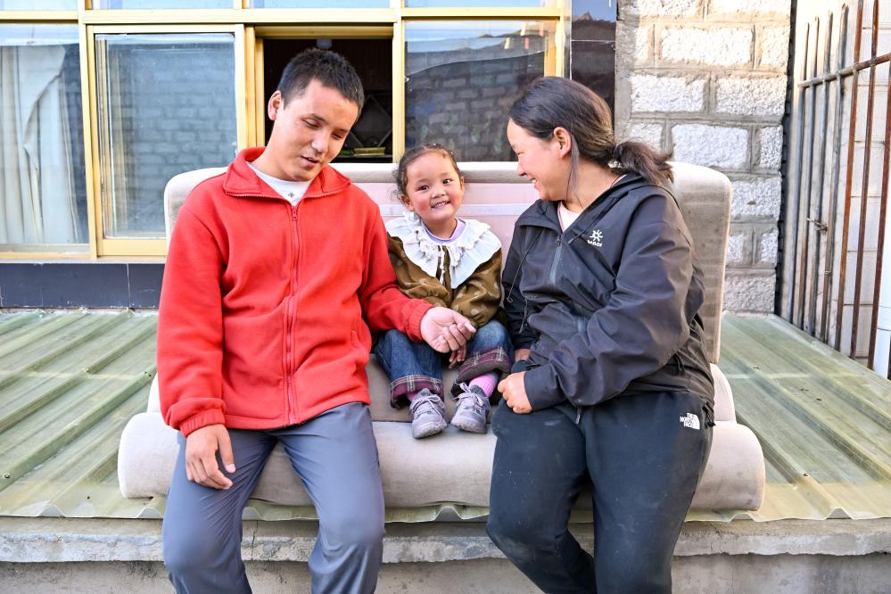 2025年10月10日,達瓦次仁在陪大女兒丹增曲音玩耍。