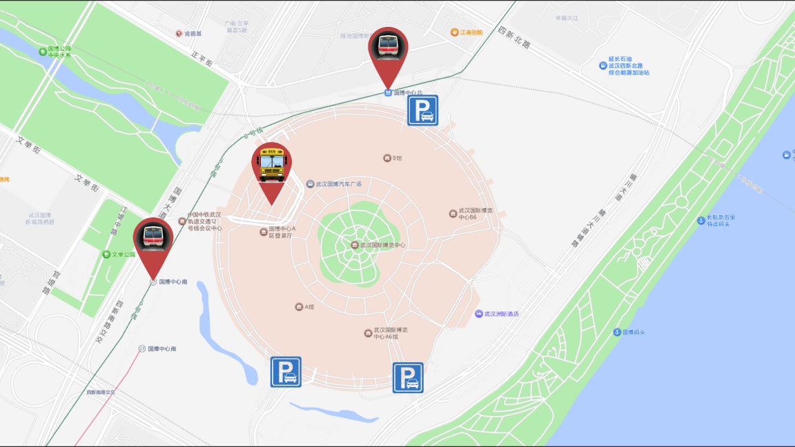 如國博中心停車場飽和,可將車輛停放至湖北港口城市陽臺停車場、漢陽江灘停車場等周邊公共停車場;周邊停車場飽和后,可在四新北路、晴川大道道路兩側單排順向依次停放。