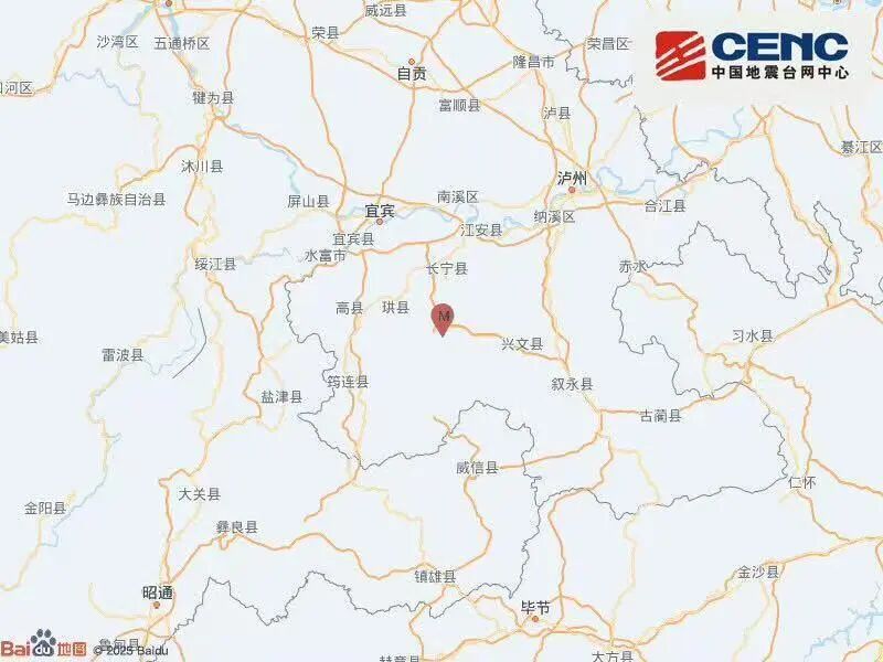 中國地震臺網正式測定:10月15日06時36分在四川宜賓市長寧縣(北緯28.36度,東經104.91度)發生3.1級地震,震源深度12千米。