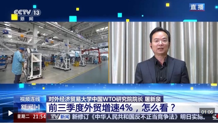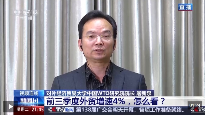 對外經(jīng)貿(mào)大學中國WTO研究院院長 屠新泉:前三季度我們?nèi)〉玫耐赓Q(mào)進出口的成績是超出了預期。能夠取得這么好的成績,也是多方面的因素:
