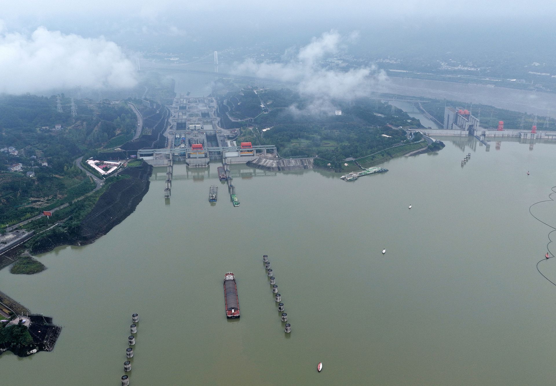 湖北宜昌,船舶有序通過三峽雙線五級(jí)船閘
