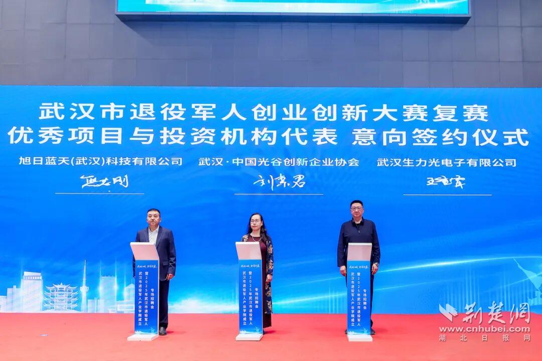 活動現場,“軍創杯”復賽的優秀企業代表、旭日藍天(武漢)科技有限公司董事長王重霄以及武漢生力光電子有限公司董事長熊志剛分享了他們的創業經歷,并與投資機構進行意向簽約,九州通醫藥集團股份有限公司黨委書記田超華則分享了聘用退役軍人的經驗與體會。