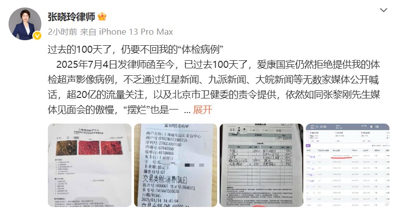 2025年7月4日發(fā)律師函至今,已過去100天了,愛康國賓仍然拒絕提供我的體檢超聲影像病例,不乏通過無數(shù)家媒體公開喊話,超20億的流量關(guān)注,以及北京市衛(wèi)健委的責(zé)令提供,依然如同張黎剛先生媒體見面會的傲慢,“擺爛”也是一種態(tài)度,原來背后有這樣的“靠山”......