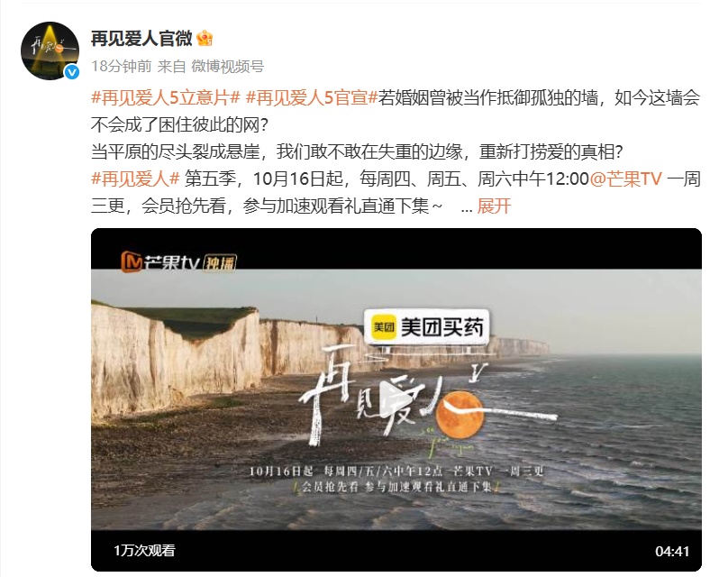10月15日,綜藝節(jié)目《再見愛人5》官宣嘉賓:鄧莎&路行、李施嬅&車崇健、何美延&TSong梁老師。本季將探討跨國文化差異(李施嬅情侶)、產(chǎn)后抑郁(何美延夫婦)、事業(yè)與家庭平衡(鄧莎夫婦)不同的社會議題。相關(guān)話題沖上熱搜第一。
