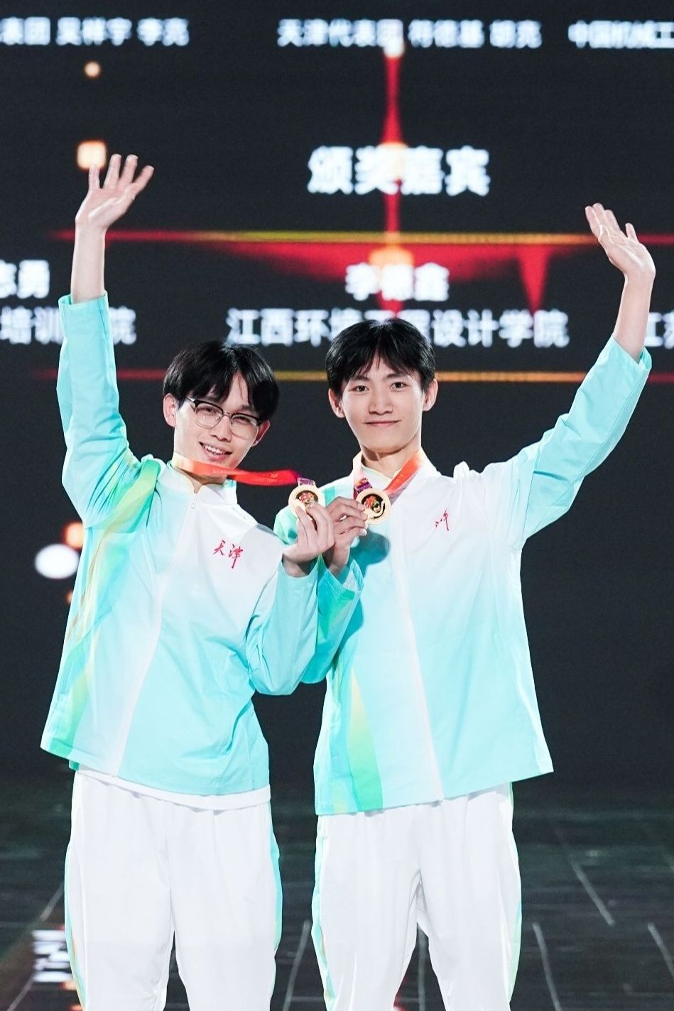 胡亮(左)與同伴斬獲金牌(央廣網(wǎng)發(fā) 天津職業(yè)技術(shù)師范大學(xué)供圖)