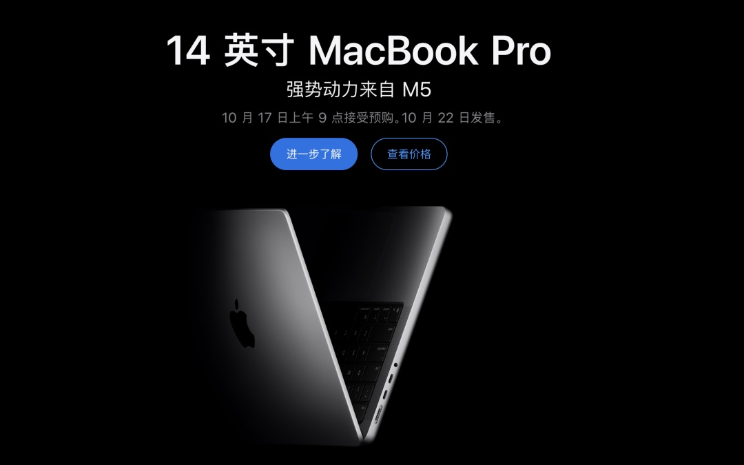 蘋果首席執(zhí)行官蒂姆·庫克15日宣布推出全新的14英寸和16英寸MacBook Pro,均搭載M5芯片,在性能、續(xù)航與AI處理能力方面全面升級。蘋果官網(wǎng)顯示,新款MacBook Pro將于10月17日上午9時開啟預(yù)購,10月22日正式發(fā)售。