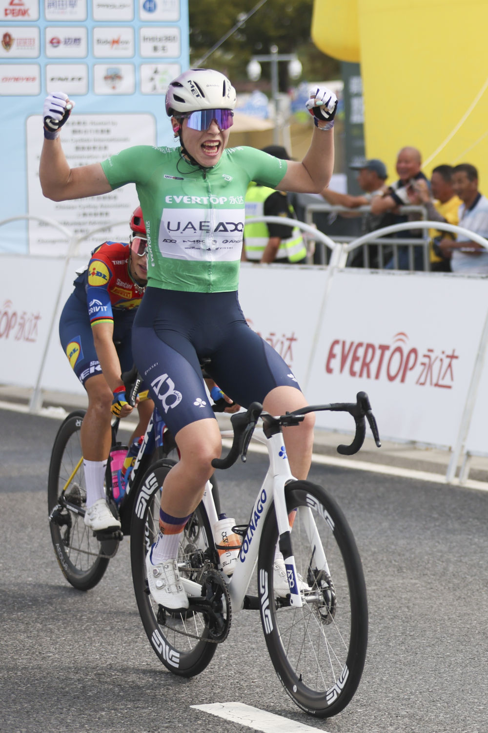 新華社上海10月15日電(記者田光雨、許東遠(yuǎn))15日,2025年環(huán)崇明島國際自盟女子公路世界巡回賽結(jié)束第二賽段爭奪。阿聯(lián)酋ADQ車隊23歲小將范·羅延·索菲奪得該賽段冠軍,同時獲得代表個人總成績第一的黃衫和代表“沖刺王”的綠衫。