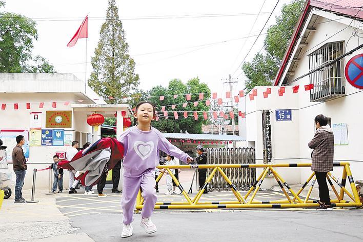 10月13日,曾經擁堵的校門口變通暢,孩子們臉上露出笑容。(湖北日報全媒記者 周鵬 攝)