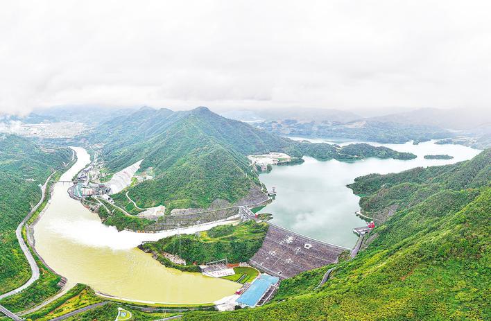 10月12日,竹山縣潘口電站開閘泄洪,為新一輪強降雨留足庫容。受“華西秋汛”影響,竹山縣持續降雨,堵河流域多座水庫開閘泄洪,為后續降雨留足庫容。 (視界網 石濡華 攝)