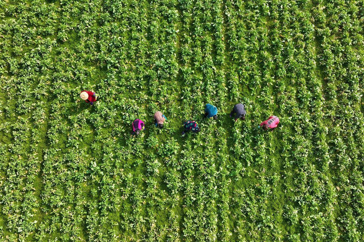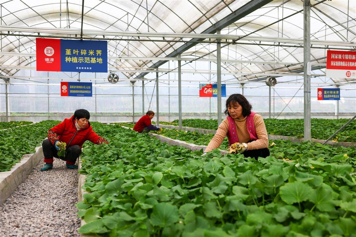 在恩施市崔家壩鎮斑竹園村硒菜薹基地,村民正在采摘菜薹。(通訊員 張遠明 攝)