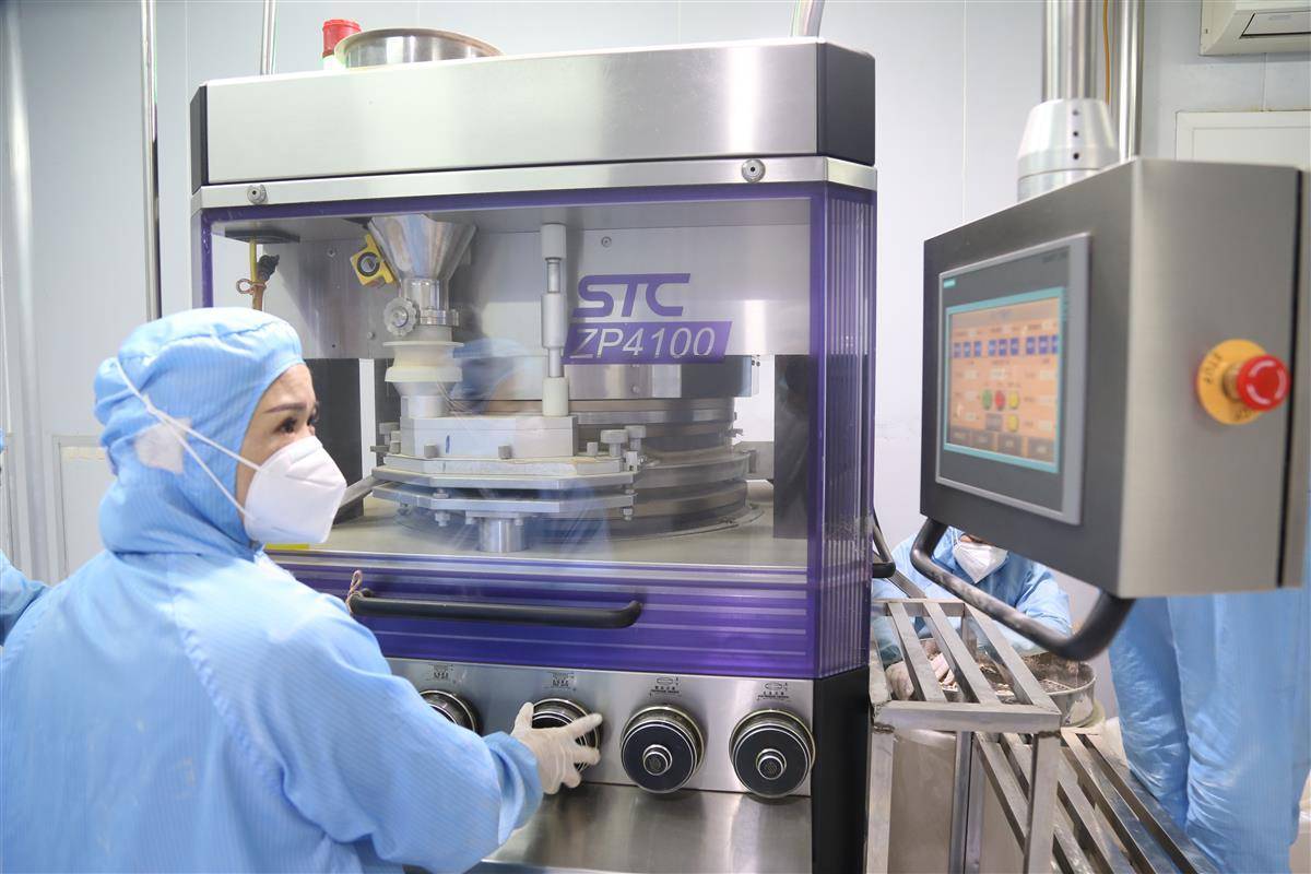 在恩施德源植物硒肽、植物硒蛋白提取車間,工作人員正在忙碌。(湖北日報全媒記者 蔡俊 攝)