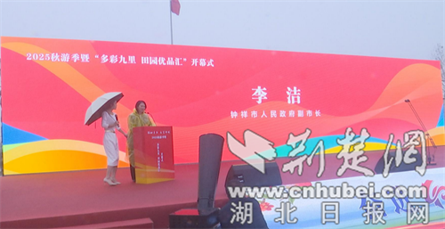 李潔宣布“探秘壽鄉 樂享鐘祥”2025秋游季暨“多彩九里 田園優品匯”正式啟動!九里回族鄉政府負責人回顧了九里四十年奮進征程的豐碩成果,展望農文旅融合賦能“同心現代化”發展的美好未來。
