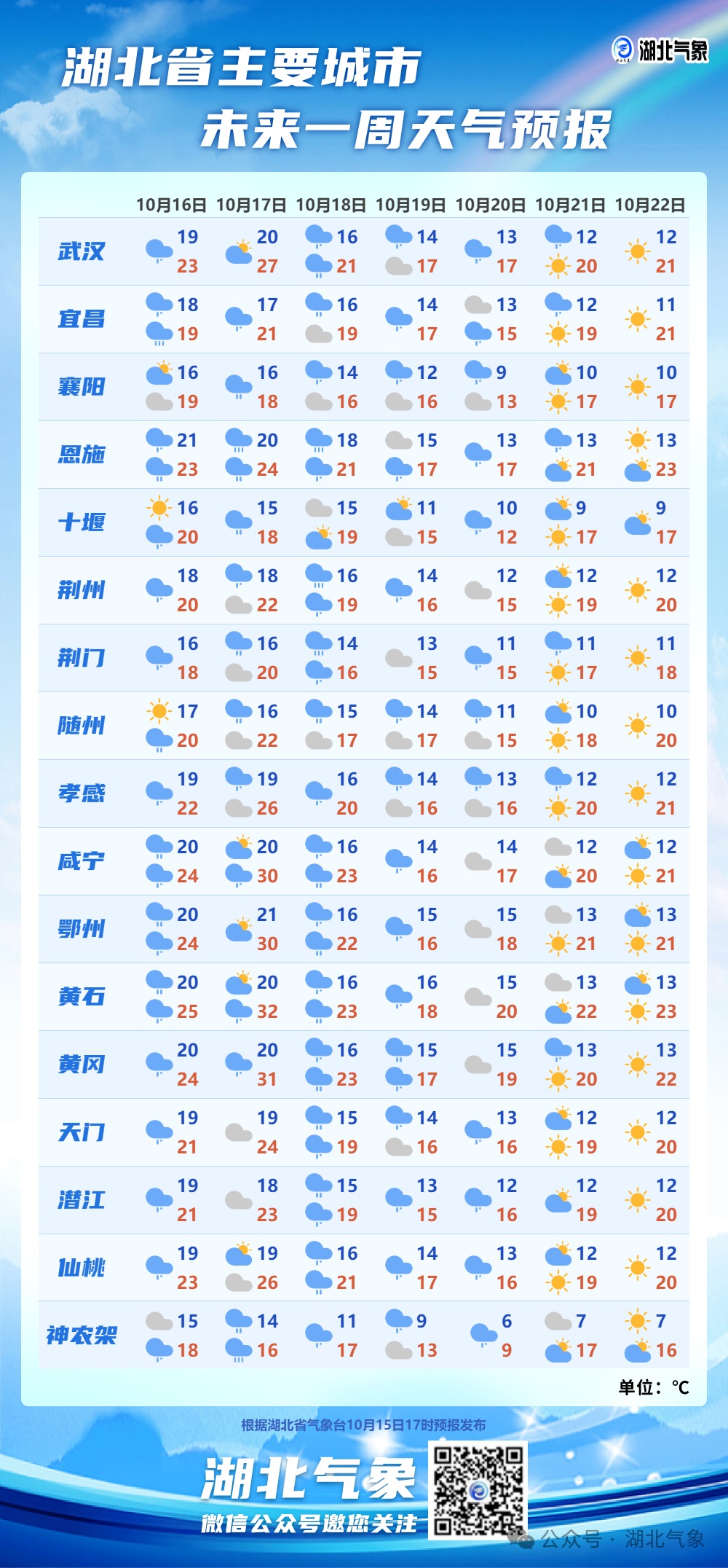 氣溫方面,今天最高氣溫鄂東南22~24℃、其他地區(qū)18~22℃。明天鄂西北降至17~20℃、鄂東有小幅回升為26~29℃、其他地區(qū)20~26℃。后天受冷空氣影響,全省大部降至17~21℃。