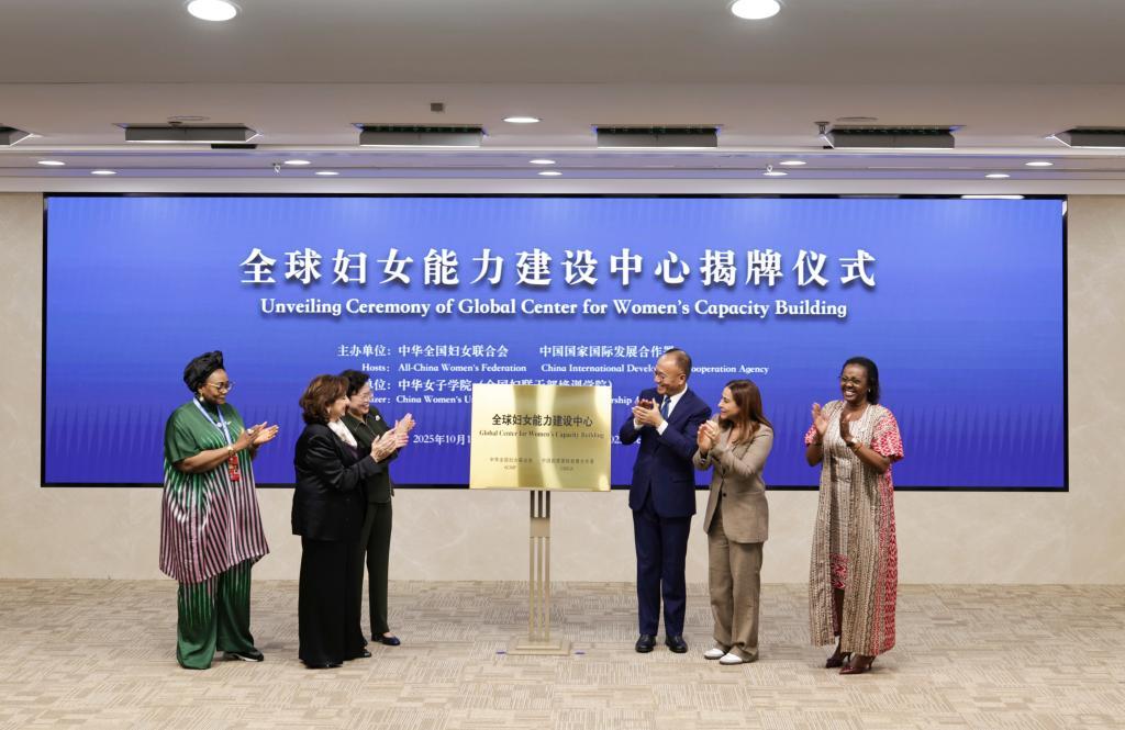 10月14日,全國婦聯和國家國際發展合作署在中華女子學院舉行“全球婦女能力建設中心”揭牌儀式。這是揭牌儀式現場。新華社記者 張玉薇 攝