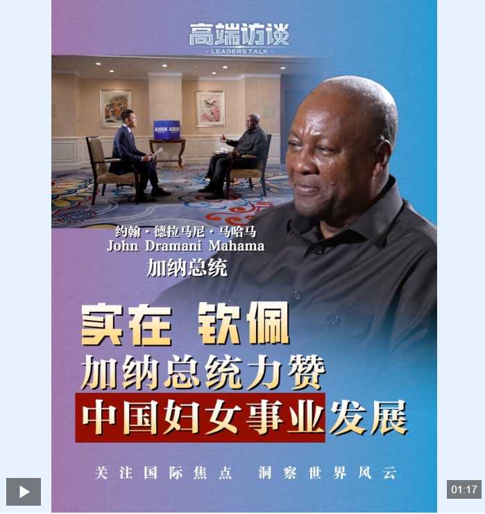 近日,加納總統(tǒng)馬哈馬接受總臺(tái)《高端訪談》節(jié)目專(zhuān)訪時(shí),用“實(shí)實(shí)在在、令人欽佩、為之驕傲”力贊中國(guó)婦女事業(yè)成就。