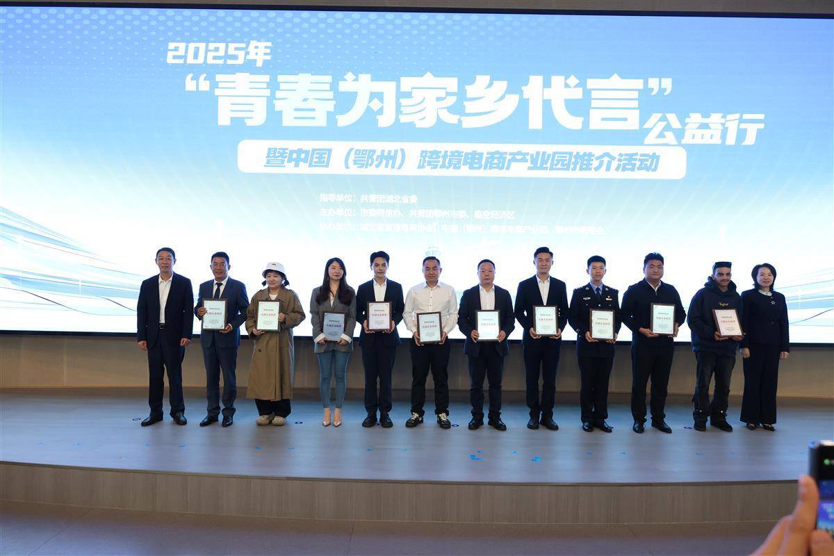 鄂州市為青年代表頒發鄂州跨境電商共創青春伙伴證書。湖北日報全媒記者周鵬攝