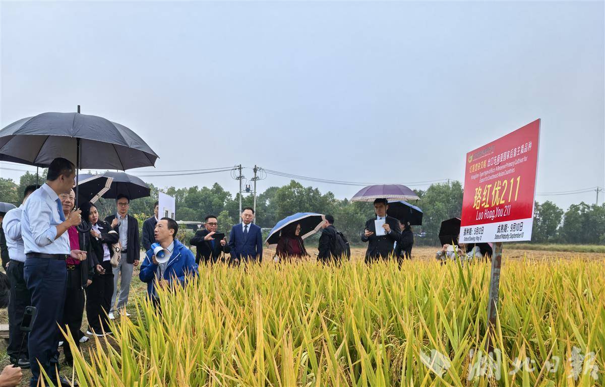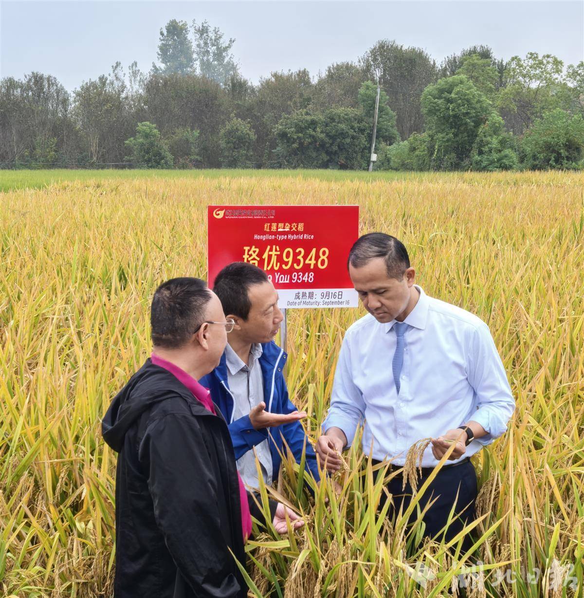 湖北日報訊(記者崔逾瑜、通訊員項俊平)10月15日,印度尼西亞人口流動部部長穆罕默德·伊夫提塔赫·蘇萊曼一行21人,前往武漢國英種業有限公司雜交水稻科研展示基地考察紅蓮型雜交水稻新品種。