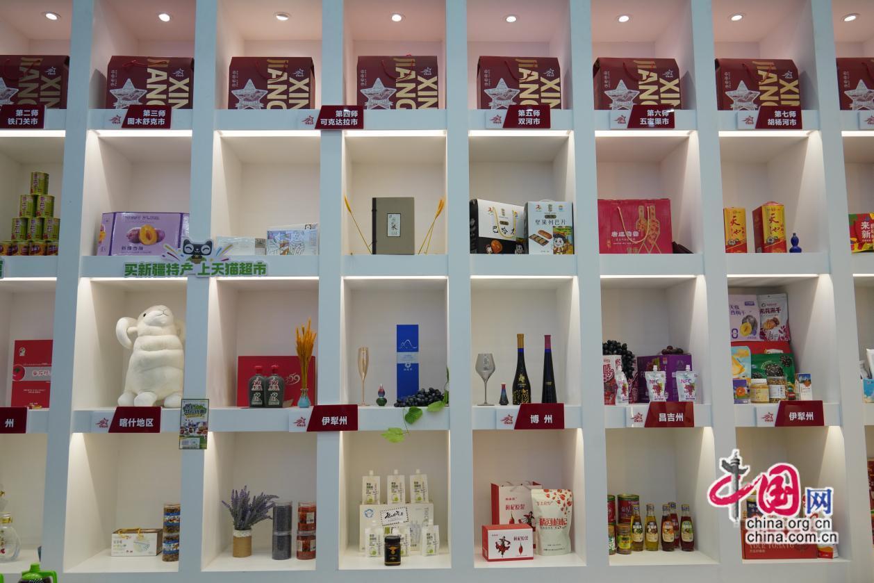 ▲“軍墾之星”數創基地展示的全疆各地優質農產品。中國網記者 胡俊 攝