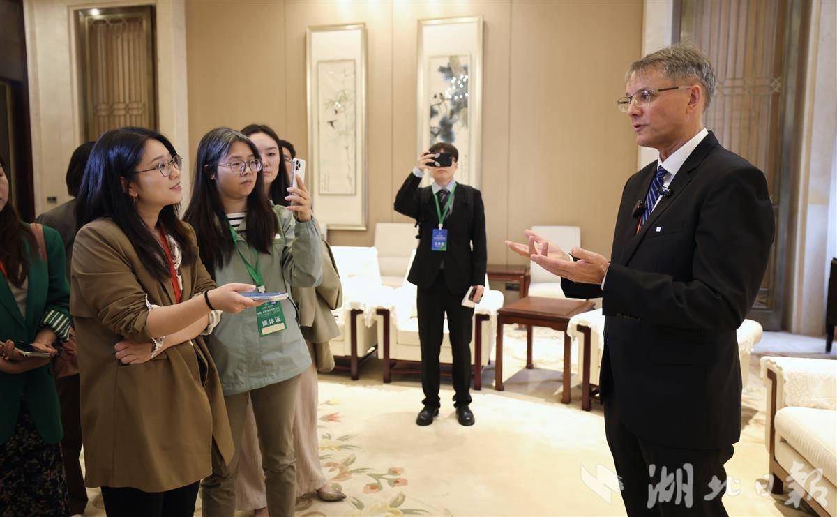 外國嘉賓正在接受湖北日報全媒記者采訪。(記者陳少哲攝)