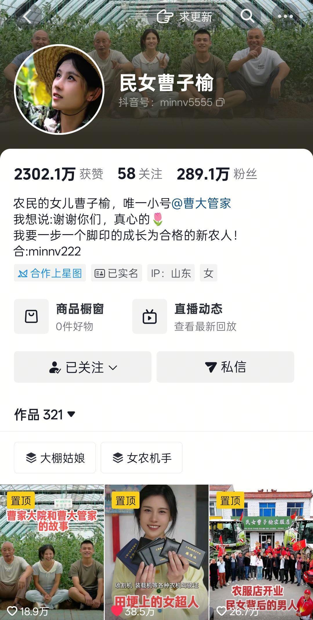 “新農人”曹子榆的短視頻賬號
