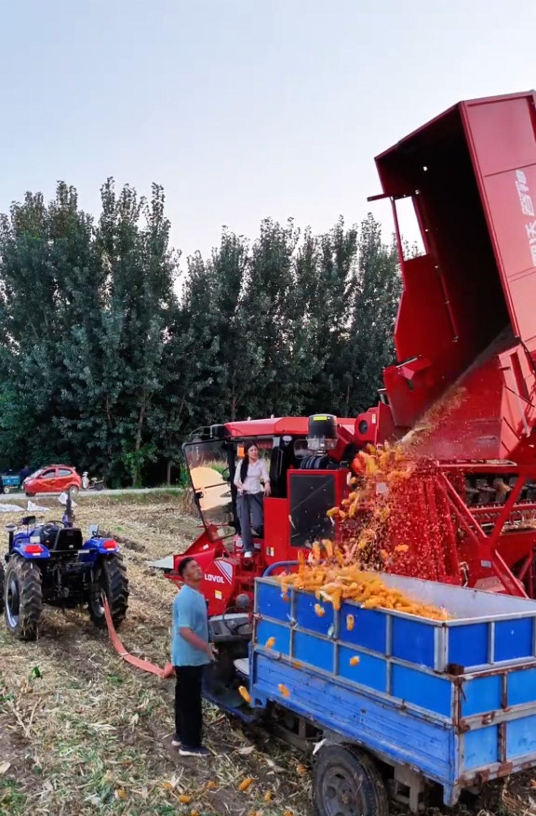 曹子榆開著收割機幫鄉親父老收割玉米(來源:受訪者)