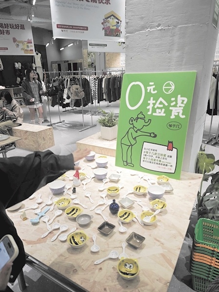 值得一提的是,“等于幾”品牌推出“0元撿瓷”活動,顧客通過打卡就能帶走一個小瓷碗或是湯匙等。正在挑選瓷器的市民王女士表示,自己專程為“0元撿瓷”而來。“在網上刷到了這個活動,沒想到不花錢真的能淘出小瓷器。選品價格也和景德鎮當地差不多,性價比很高。”
