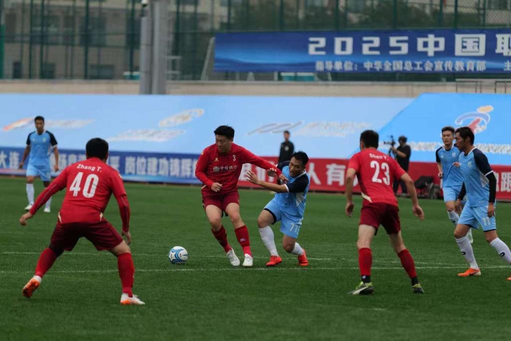 大連賽區揭幕戰15日在大連足球青訓基地舉行,由大連金普新區職工代表隊對陣中信銀行股份有限公司職工代表隊。在2000余名觀眾和職工球迷的現場見證下,東道主球隊4:0輕松取勝,球隊主教練王海軍賽后表示:“參賽球員都是一線教職工,他們在比賽中頑強拼搏,展現出精氣神,促進了(與對手之間的)學習交流。”