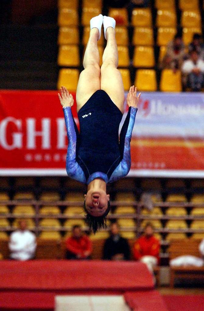 2001年,廣州九運會。“那時候其實有絕對實力,但并不是沒有競爭對手。我的閨蜜也是隊友鄭曉鋆在我前面做,做得挺好,我就有壓力了。上了難度套,結果失敗了。”