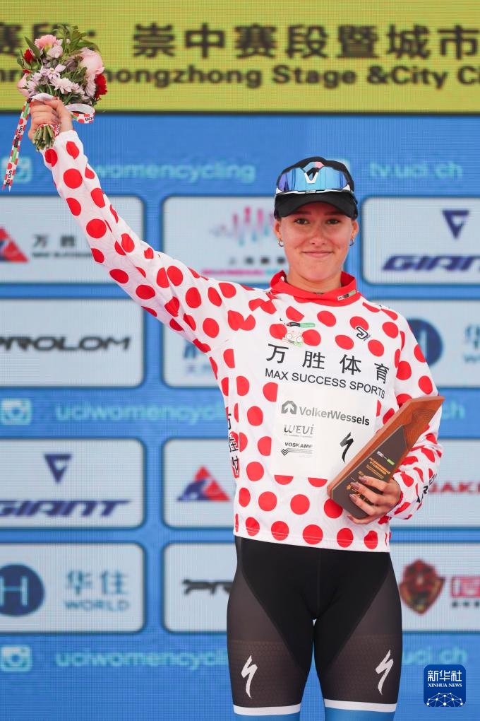 10月16日,瓦爾克韋塞爾斯職業車隊荷蘭車手克尼嫩堡身著代表爬坡總積分第一名的圓點衫在頒獎儀式上。