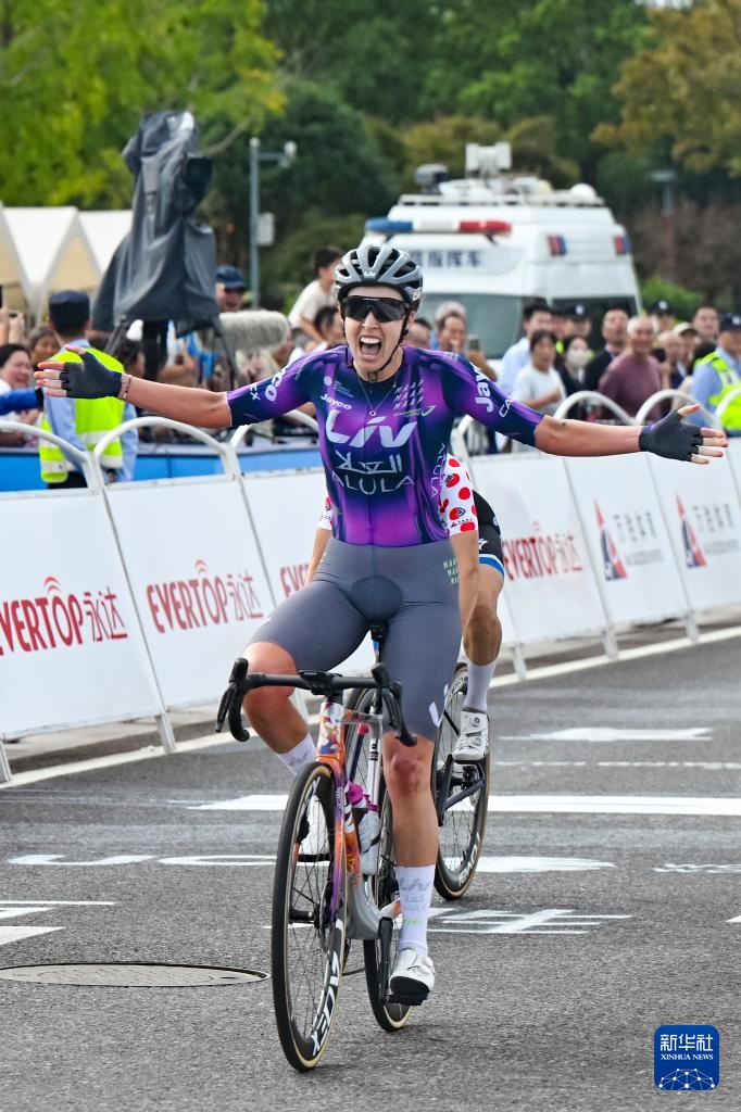 10月16日,麗芙-埃爾奧拉-杰科車隊澳大利亞車手塔爾博特率先沖線后慶祝。