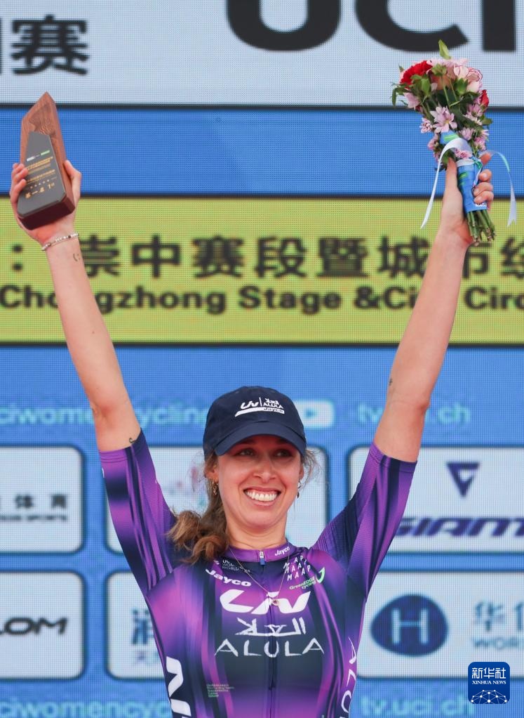 10月16日,賽段冠軍麗芙-埃爾奧拉-杰科車隊澳大利亞車手塔爾博特在頒獎儀式上慶祝。