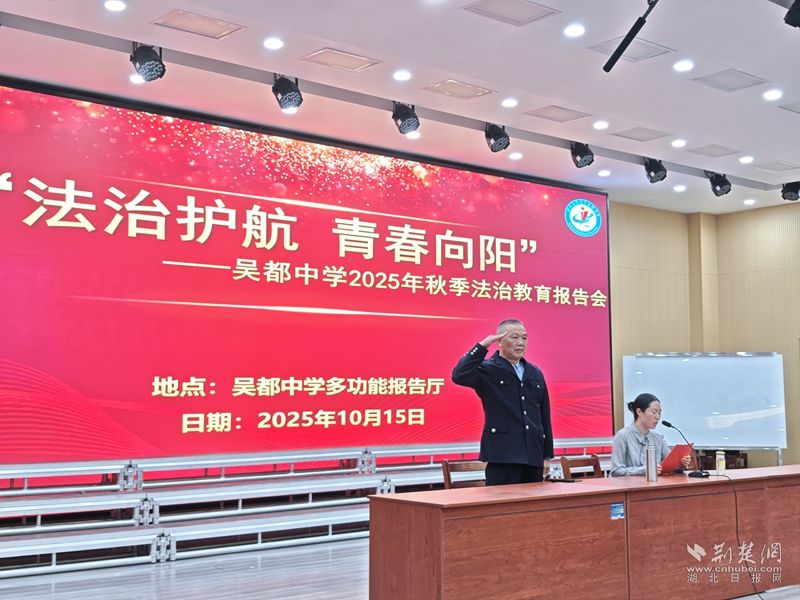 荊楚網(湖北日報網)訊(通訊員 夏杰倫)10月15日,鄂州市吳都中學圍繞“法治護航,青春向陽”主題,舉辦2025年秋季法治教育報告會。活動特邀湖北省鄂東監獄退休干警呂新江擔任主講嘉賓。