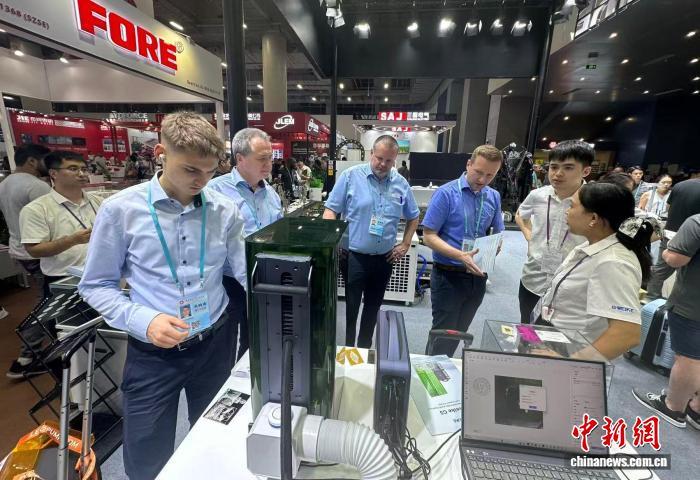 10月16日,第138屆廣交會繼續在廣州舉行。圖為境外采購商正在了解中國企業展出的激光打標機。記者 程景偉 攝