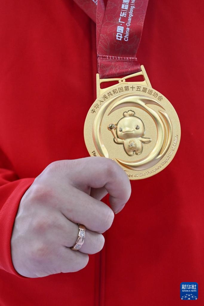 10月17日,獲得冠軍的陜西隊選手劉宇坤展示獎牌。
