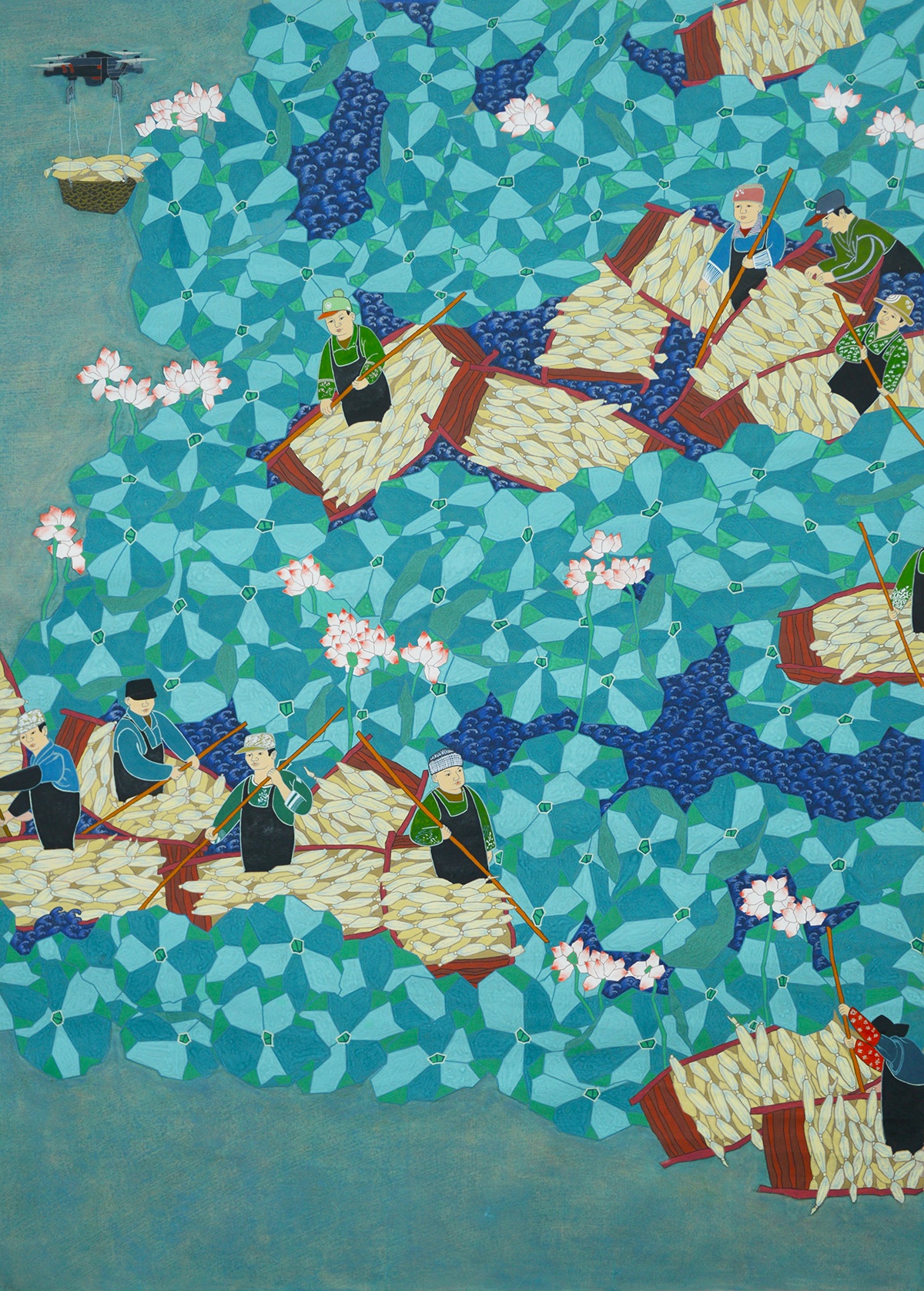 經由中國國家博物館、中國美術家協會組成的專家組評審,我省共有5件農民畫作品入選“大地繪彩——2025年農民畫大展”。