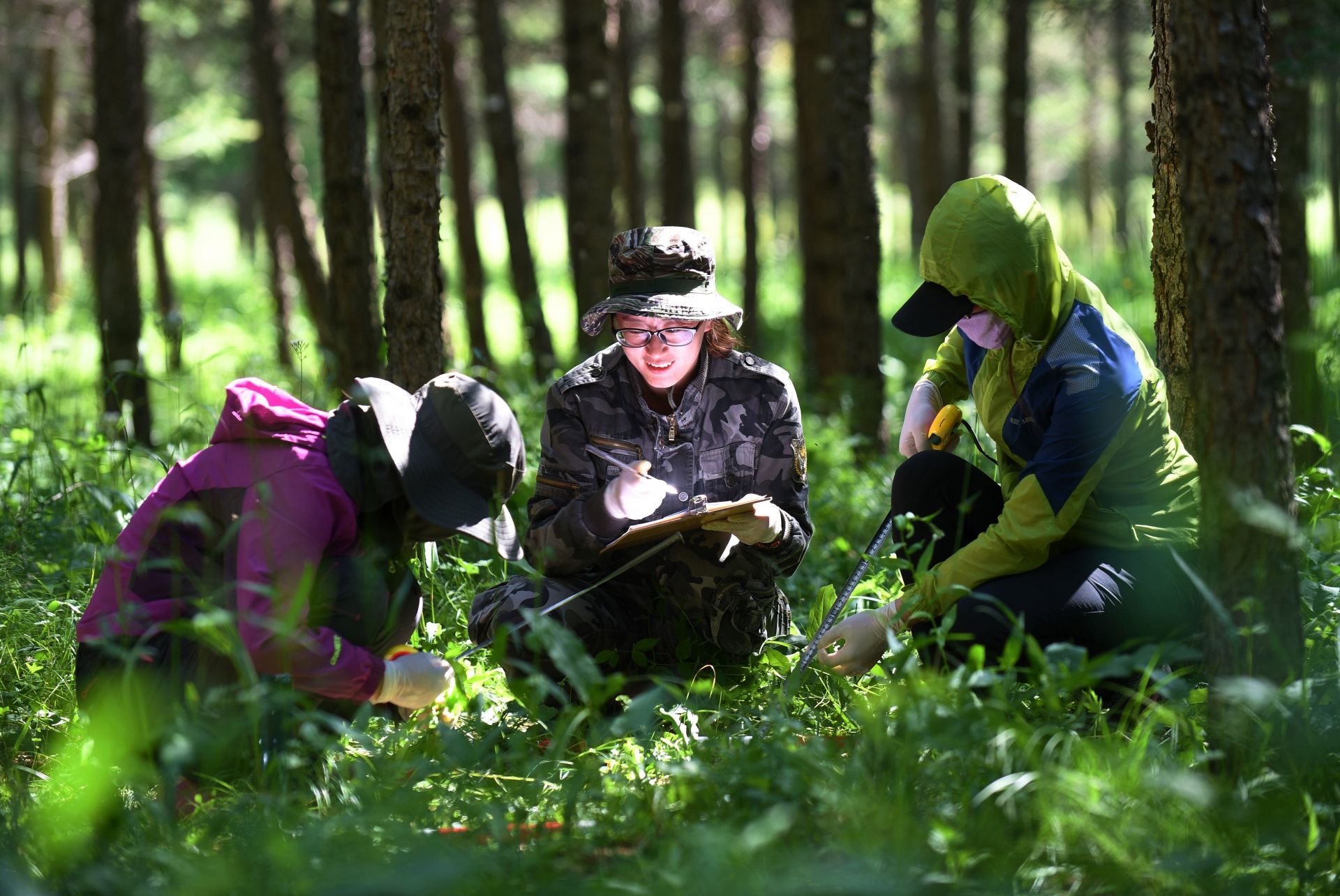 工作人員在河北塞罕壩機(jī)械林場(chǎng)采集數(shù)據(jù)。新華社記者 王曉 攝