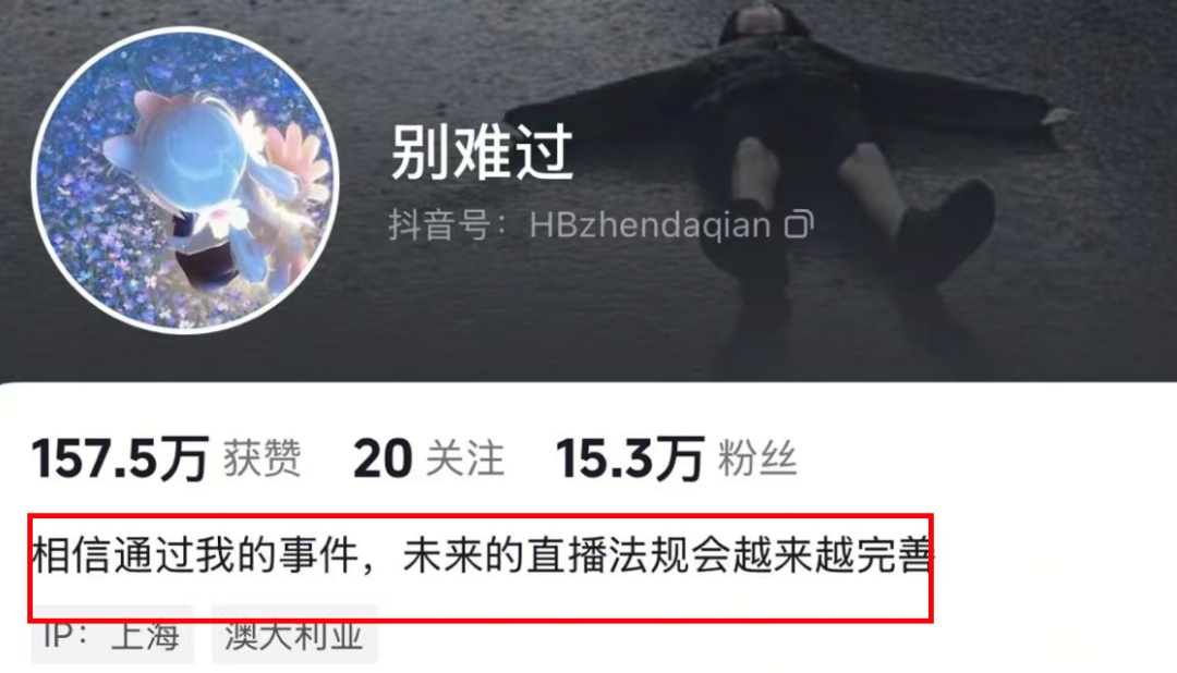 由于“別難過”打賞金額高,被網(wǎng)友稱作“榜一大哥”。“別難過”在個人簽名寫到:相信通過我的事件,未來直播法規(guī)越來越完善。