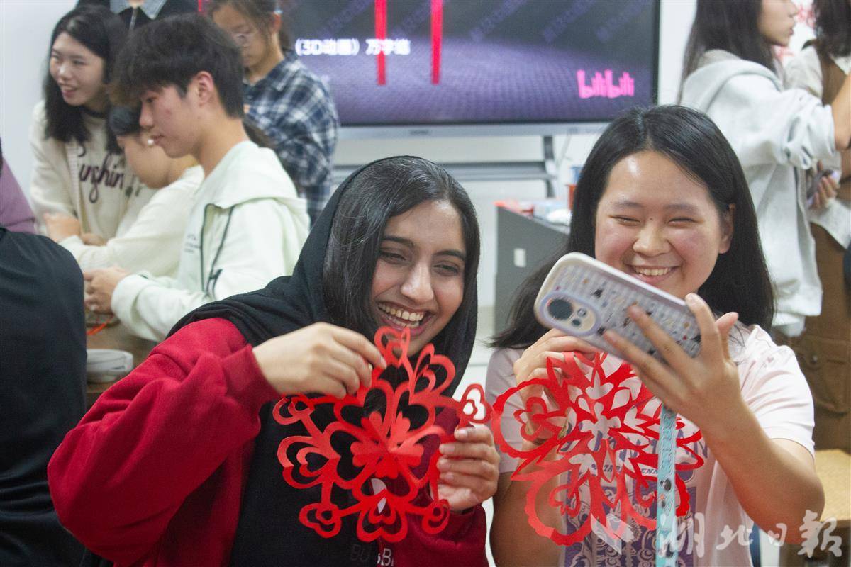 湖北日報訊(記者張歆、通訊員徐湘穎、范夢穎、趙彤彤)一根紅線,聯結不同國度的青春;一張紅紙,剪出跨越文化的笑容。10月16日,武漢科技大學30余名中外學子開展“沁湖華韻”跨文化交流沙龍,通過中國結與剪紙兩項傳統技藝,沉浸式開啟了一場指尖上的文化之旅。