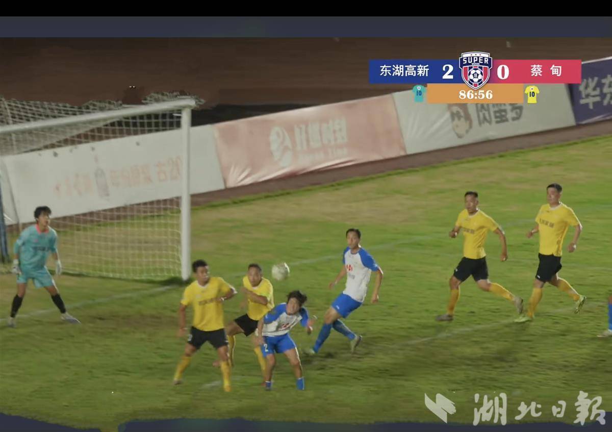 在比賽最后階段,現(xiàn)場球迷仍在高喊“3比0、3比0”,希望東湖高新區(qū)隊(duì)再進(jìn)一個(gè),但比分并未改寫。