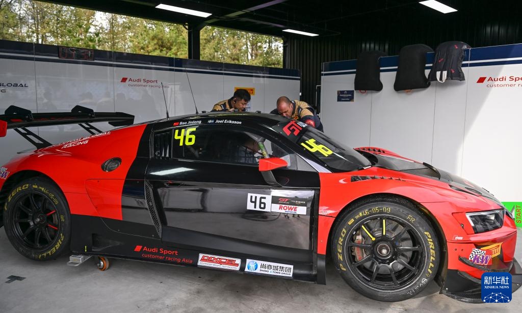 10月17日,奧迪運動亞洲·魅影車隊工作人員調試賽車。