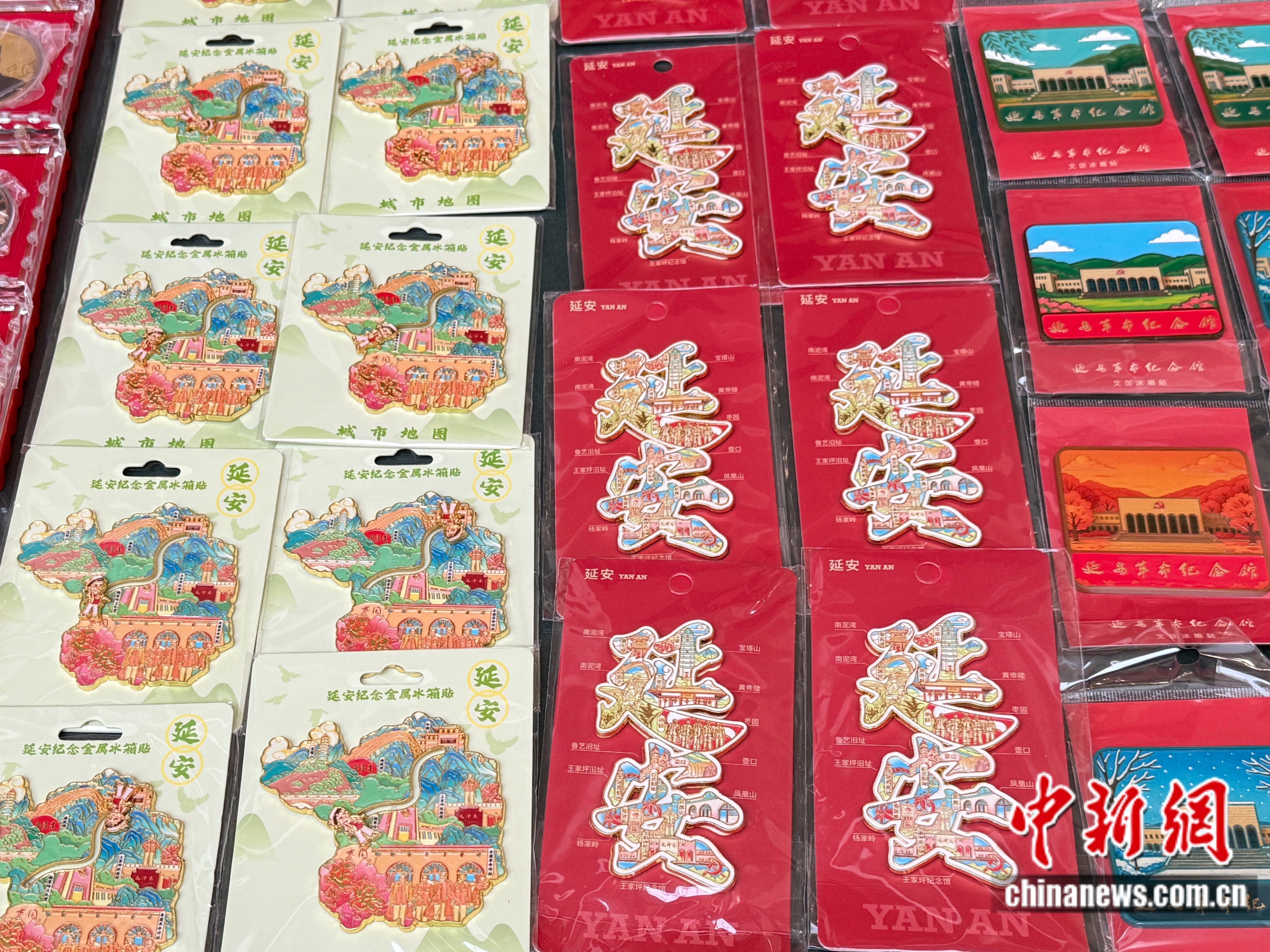 在延安革命紀念館中的文創(chuàng)店里,帶有紅色元素的冰箱貼、明信片、帆布包等文創(chuàng)產品玲瑯滿目,吸引了不少游客參觀購買。該館還推出了蓋章打卡活動,以更新穎的方式,讓紅色文化更加生動有趣,在提高游客參與度的同時促進相關產業(yè)發(fā)展。