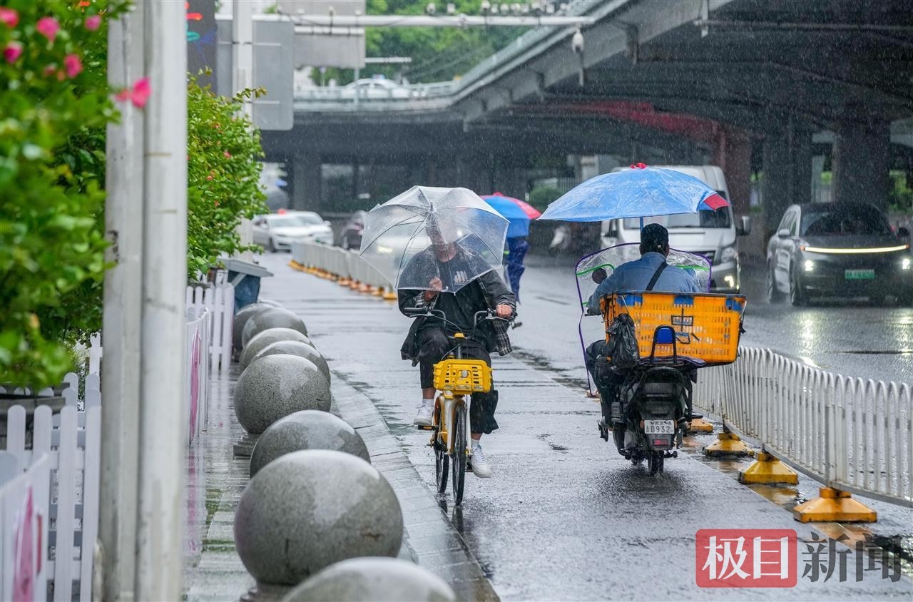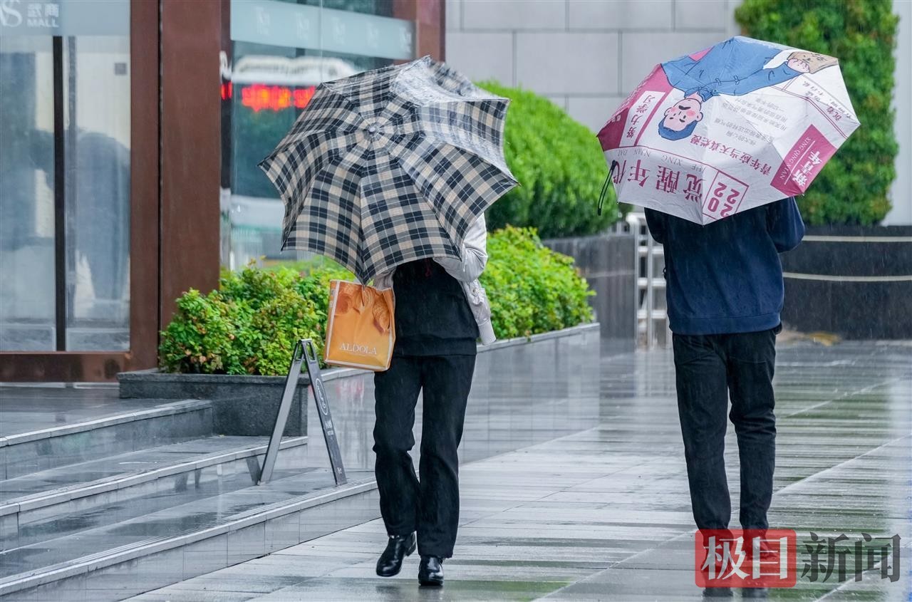當日上午8時許,極目新聞記者在漢口解放大道等處看到,街頭景象已盡顯秋日氛圍。往日還穿著短袖、襯衣的市民,如今大多換上毛衣、夾克等保暖秋裝,應對驟降的氣溫。不少市民手持雨傘,腳步匆匆地穿梭在街道上,傘面交織成一片移動的“防護網”;外賣、快遞小哥等則穿上雨衣,在秋風秋雨中穩步前行,大家都做好了防雨保暖準備,街頭雖添涼意,卻依舊秩序井然。