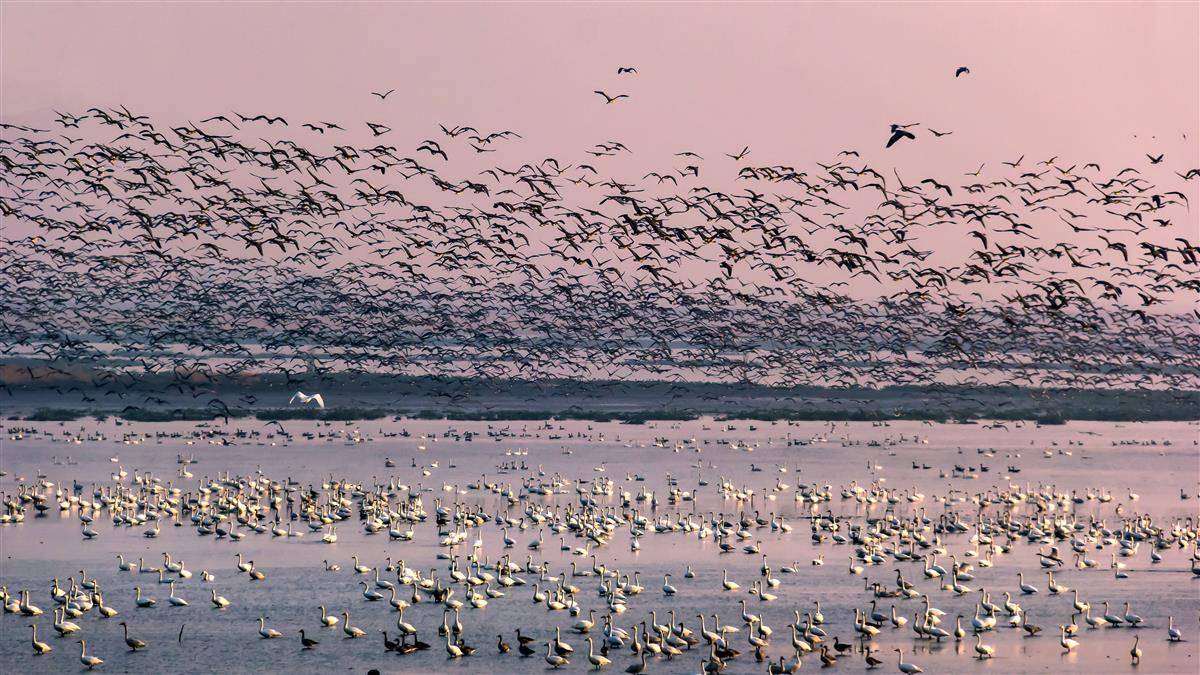 作為以國(guó)家級(jí)自然保護(hù)區(qū)為保護(hù)方式的重要濕地,龍感湖承載著珍貴的生態(tài)使命。其主要保護(hù)對(duì)象包括長(zhǎng)江中下游淡水湖泊濕地生態(tài)系統(tǒng),以及青頭潛鴨、東方白鸛、白頭鶴等珍稀瀕危物種及其棲息地,同時(shí)還守護(hù)著野菱、粗梗水蕨等珍稀野生植物。近年來(lái),通過(guò)實(shí)施濕地修復(fù)、水質(zhì)改善、生態(tài)監(jiān)測(cè)等系列舉措,龍感湖濕地生態(tài)環(huán)境持續(xù)向好,已成為眾多候鳥遷徙的中轉(zhuǎn)站和越冬地,每年在此棲息的鳥類數(shù)量穩(wěn)步增長(zhǎng),珍稀物種出現(xiàn)頻次顯著增加。