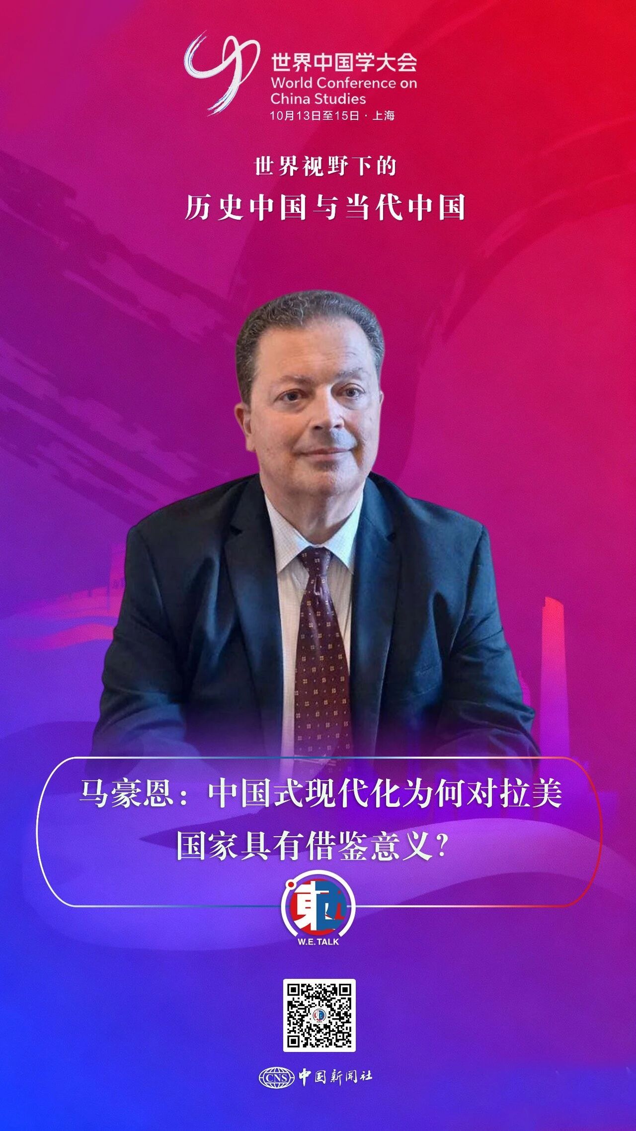 第二屆世界中國學(xué)大會10月13日至15日在上海舉行,受邀參會的阿根廷國際關(guān)系理事會亞洲事務(wù)委員會(CARI)主席馬豪恩(Jorge Malena)接受中新社“東西問”專訪,就中國式現(xiàn)代化與拉美經(jīng)驗分享他的觀察與思考。